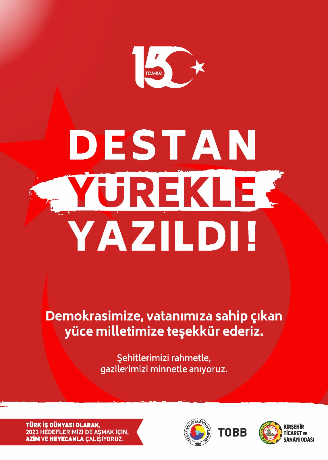 Her bakımdan bir dönüm noktası olan 15 Temmuz gecesi göstermiştir ki; hiçbir ihanet odağı, ayağa kalkan milli ruh ve demokrasi inancımız karşısında duramaz. Ulu Önderimizin işaret ettiği üzere, Türkiye Cumhuriyeti tüm egemenlik yetkisini kayıtsız ve şartsız olarak milletimizden almaktadır. Demokrasimize yönelen her türlü saldırı dün olduğu gibi bugün de en sert şekilde karşılık bulacaktır.