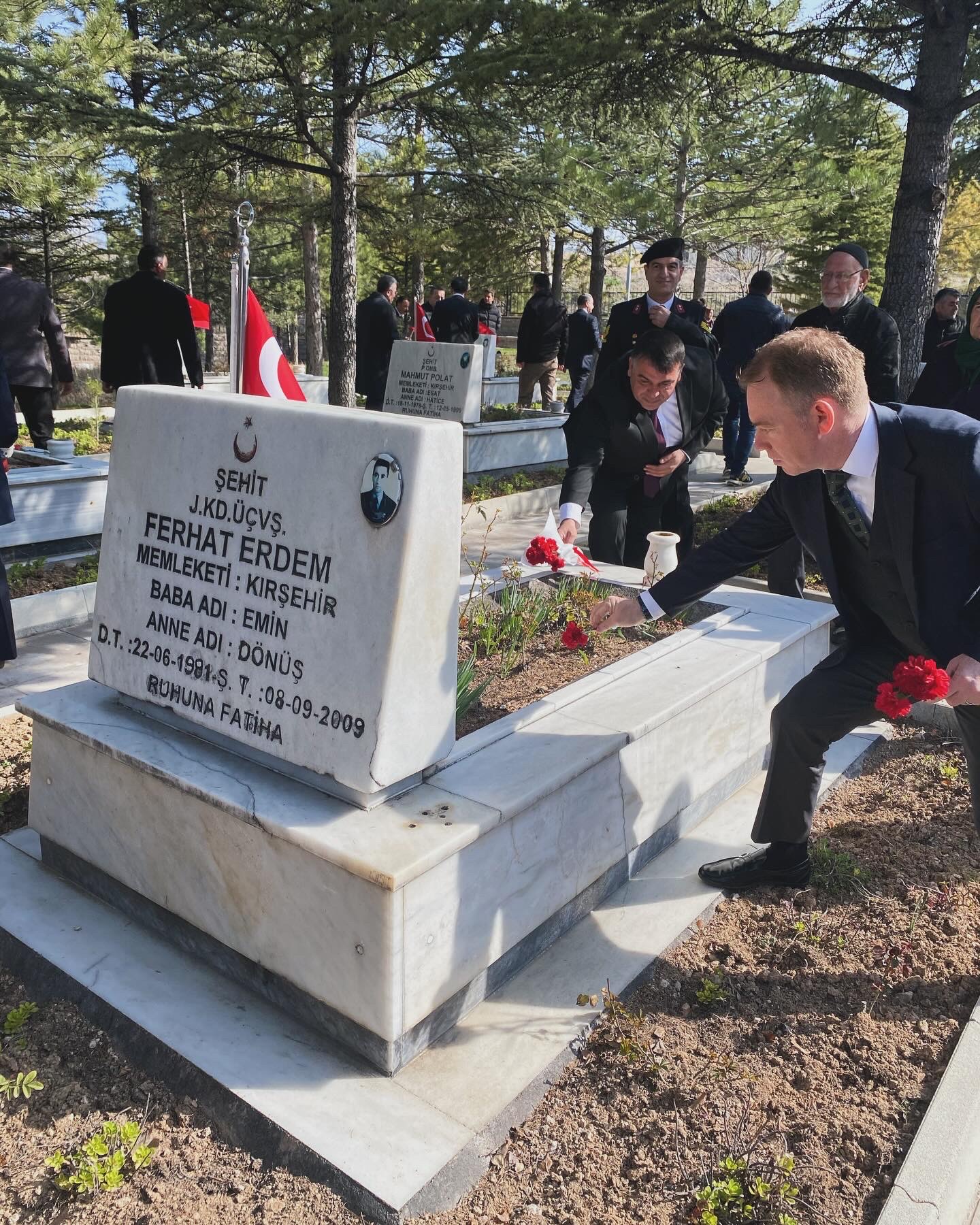 18 Mart Çanakkale Zaferi ve Şehitleri Anma Günü münasebetiyle; Kırşehir Valisi Hüdayar Mete Buhara, İl Protokolü, Şehit aileleri Gaziler ve Yönetim Kurulu Başkanımız Mustafa Yılmaz’ın katılımıyla Şehit Hava Pilot Astsubay Çavuş Ahmet Tozluklu Şehitliğinde tören düzenlendi ve şehitlerimizin anısına Kur’an-ı Kerim okutularak dualarla anıldı. Anıtları başına karanfil bırakıldı.